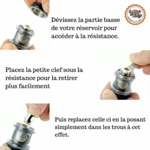 Mettez quelques gouttes de E- liquide dans les petits trous sur le coté du réservoir et 1 goutte au centre. Cela évite d’attendre 10 minutes que la résistance s’imbibe.