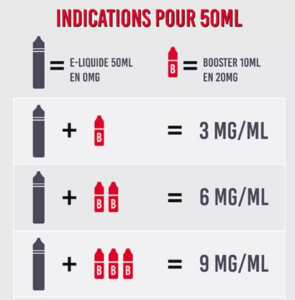 Cela vous donnera du 4,5 mg de nicotine à vaper. Avec cette méthode vous ne sentirez pas la réduction de nicotine ou de hit en gorge.